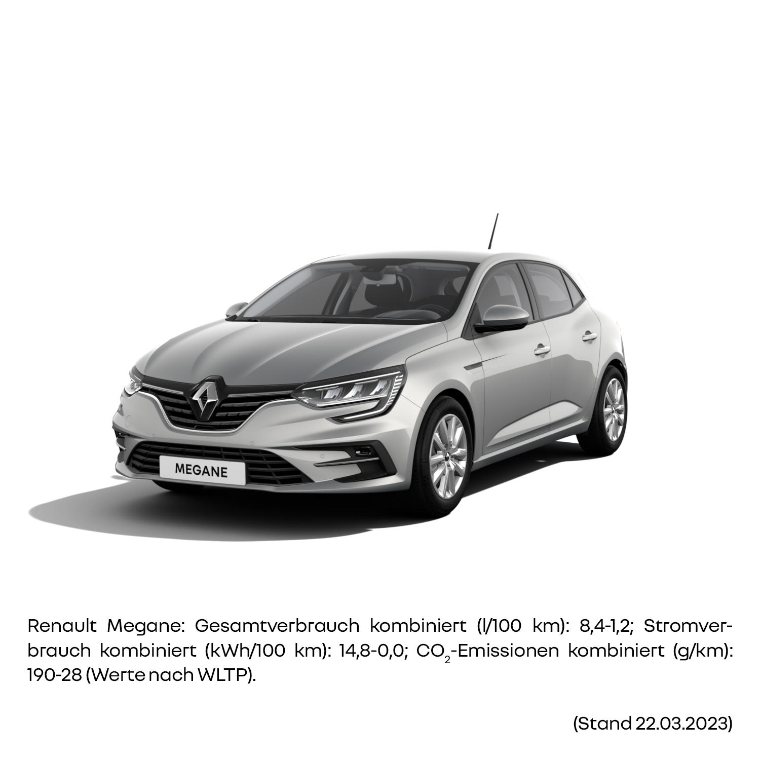 Der Renault Mégane im Autohaus Schouren nimmt Sie mit und lässt Sie nicht mehr los. Unverwechselbares Design, sportlicher Charakter und eine Ausstattung, die man aus höheren Klassen gewohnt ist. Im Mégane wird jede Fahrt zu einem leidenschaftlichen Erlebnis. Ganz gleich, was Sie mit Ihrem neuen Megane vorhaben, Rufen Sie uns an wir beraten Sie sehr gerne. Renault Mégane LIFE TCe 115 GPF, Benzin, 85 kW: Gesamtverbrauch (l/100 km) innerorts: 7,0; außerorts: 4,5; kombiniert: 5,4; CO2-Emissionen kombiniert (g/km): 124. Energieeffizienzklasse: B. Mégane: Gesamtverbrauch kombiniert (l/100 km): 5,6 - 3,9; CO2-Emissionen kombiniert (g/km): 127 - 102.* Energieeffizienzklasse: E-A (Werte nach Messverfahren VO [EG] 715/2007).