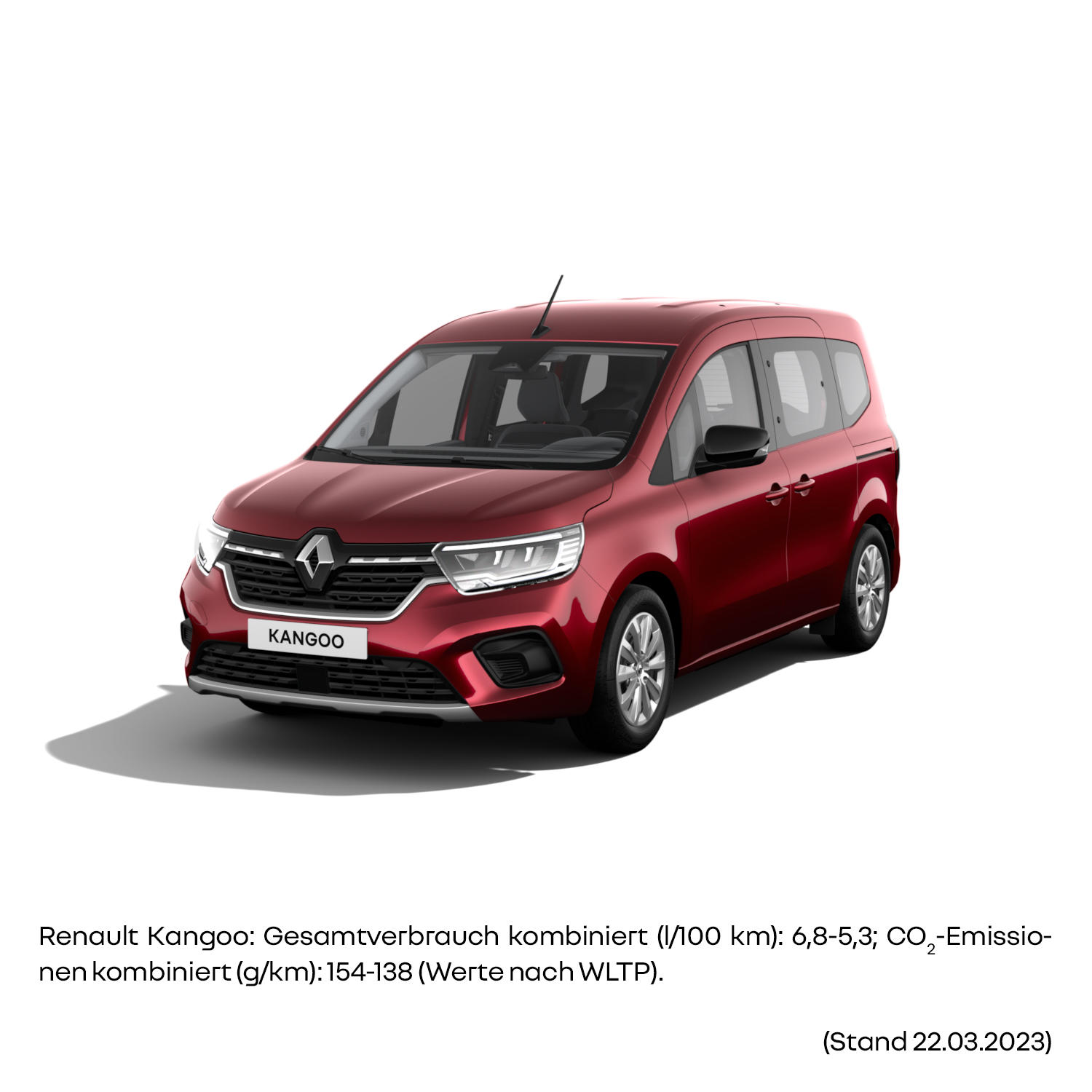 Die dritte Generation des erfolgreichen Renault KANGOO hebt den Kombivan auf ein neues Level. Über 20 Jahre liegt die Erstauflage des KANGOO bereits zurück und schon damals setzte Renault in dem noch jungen Fahrzeugsegment neue Maßstäbe, die auch in der aktuellen Auflage wieder mit einer Fülle an neuen Highlights den KANGOO zum Vorreiter seiner Klasse machen. Im Platzwunder KANGOO Kombivan können Sie den Innenraum auf Ihre Bedürfnisse und die Ihrer Fahrgäste hin personalisieren. Das Ladevolumen des KANGOO beträgt in fünfsitziger Konfiguration familiengerechte 519 Kubikdezimeter nach VDA-Norm. Wird die Rückbank komplett umgeklappt, steigt es auf 2.031 Kubikdezimeter. Wird zusätzlich noch der Beifahrersitz umgeklappt, ergibt sich eine maximale Ladelänge von 2,7 Metern. Ganz gleich, was Sie mit Ihrem neuen Renault Kangoo Kombivan vorhaben, Rufen Sie uns an wir beraten Sie sehr gerne.